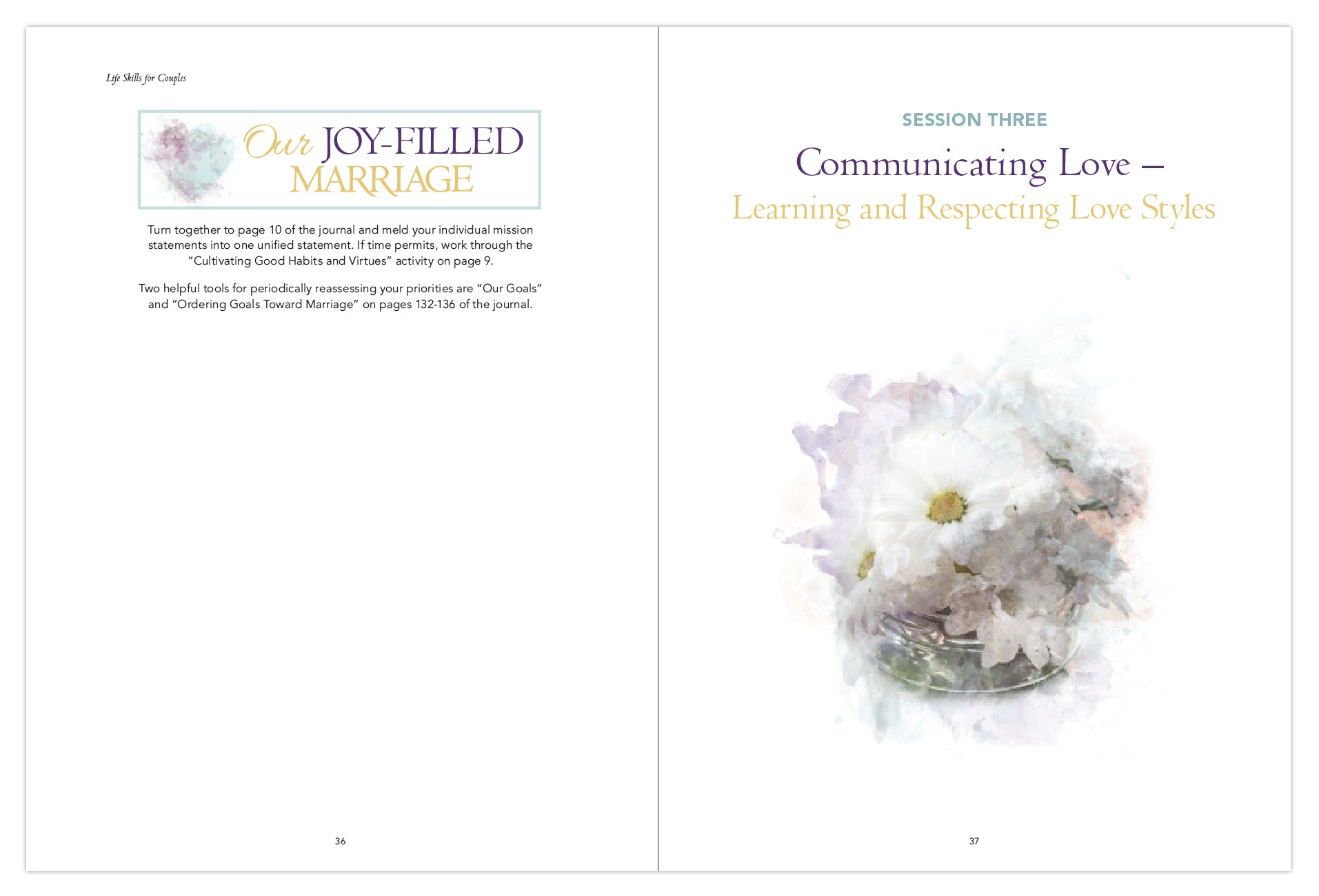 The Life Skills for Couples Couple’s Guide, one part of the Joy-Filled Marriage program, will guide participants during their participation in the Life Skills for Couples program with thought-provoking questions, inspiring quotes, and helpful commentary.