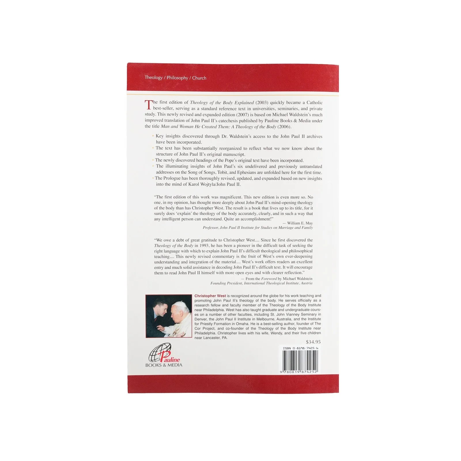 - Endorsed by experts. Dr. William E. May, Professor Emeritus at the John Paul II Institute, calls it “magnificent,” while Dr. Michael Waldstein, Professor of Theology at Franciscan University, praises it as “solid.”